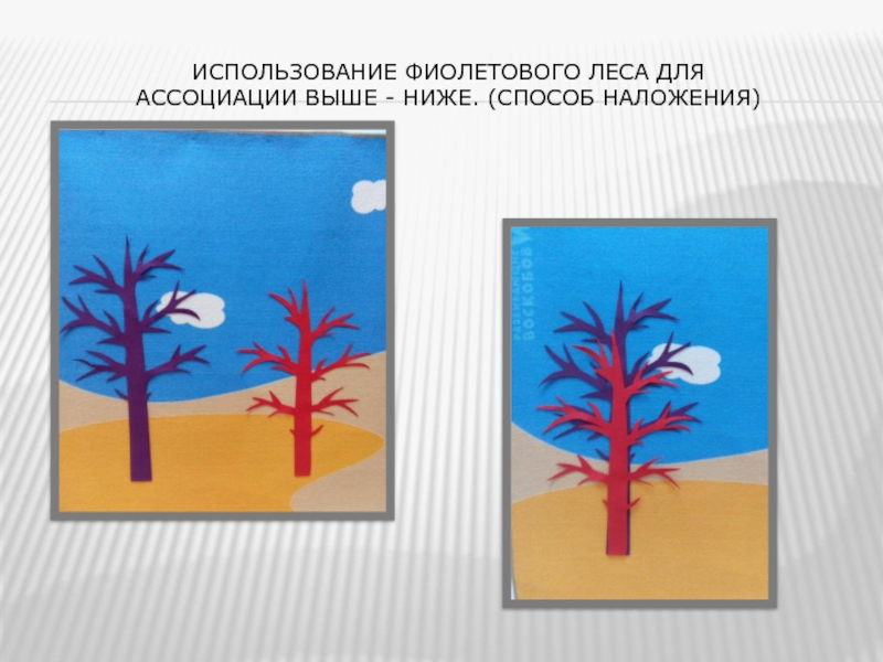 Слайд 7Использование фиолетового леса для ассоциации выше - ниже. (способ наложения)