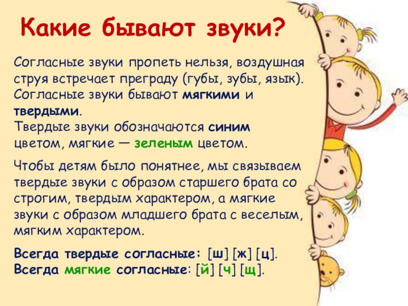 Чтобы детям было понятнее, мы связываем твердые звуки с образом старшего брата со строгим, твердым характером, а мягкие звуки с образом младшего брата с веселым, мягким характером.