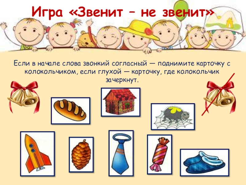 поднимите карточку с колокольчиком, если глухой — карточку, где колокольчик зачеркнут.