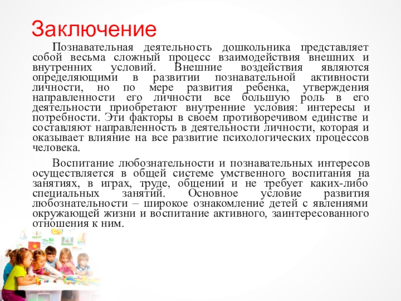 Познавательная деятельность дошкольника представляет собой весьма сложный процесс взаимодействия внешних и