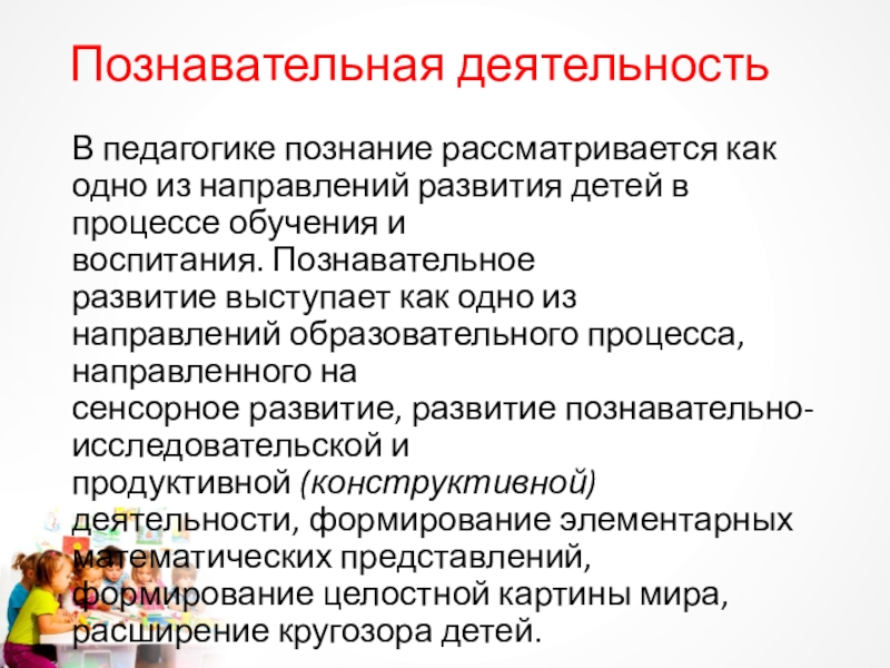 В педагогике познание рассматривается как одно из направлений развития детей в процессе обучения и
