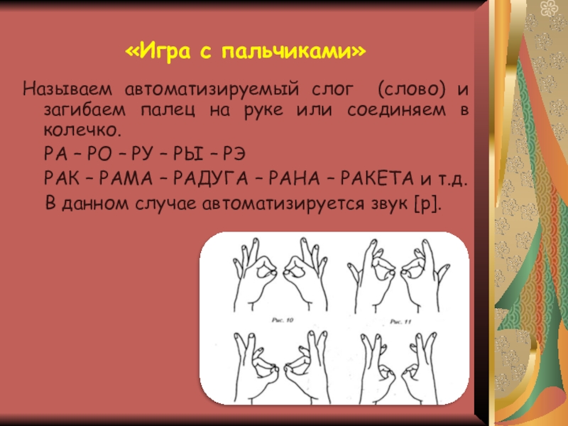 Называем автоматизируемый слог (слово) и загибаем палец на руке