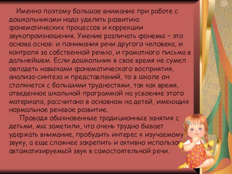 Слайд 3 Именно поэтому большое внимание при работе с дошкольниками надо