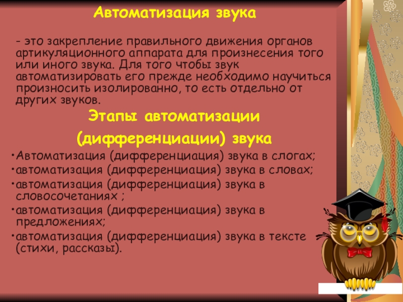 того или иного звука. Для того чтобы звук автоматизировать его прежде необходимо научиться произносить изолированно, то есть отдельно от других звуков.