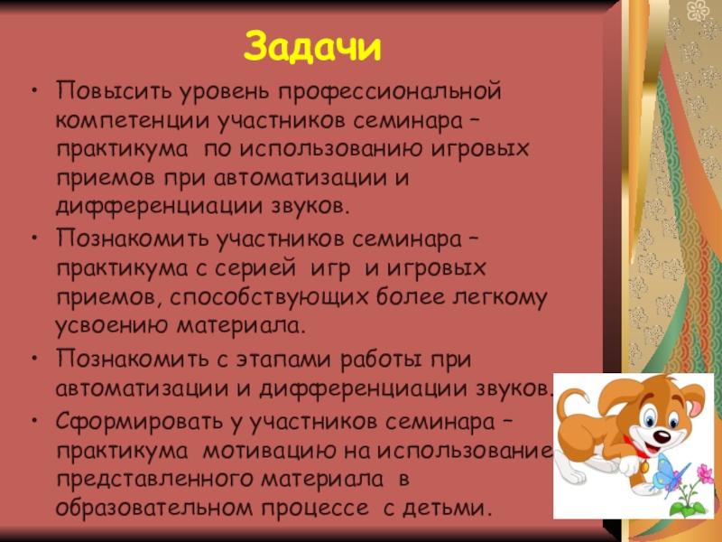 Повысить уровень профессиональной компетенции участников семинара – практикума по использованию игровых