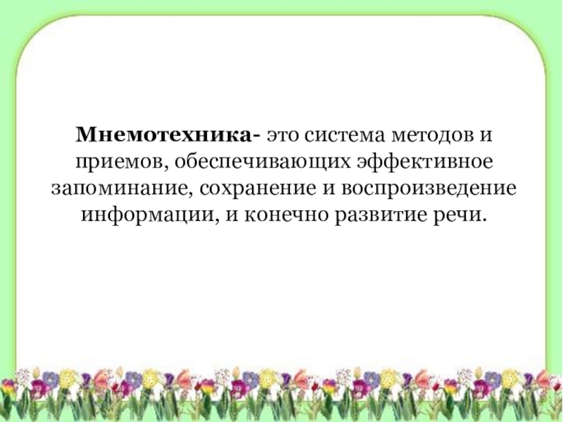 Слайд 4Мнемотехника- это система методов и приемов, обеспечивающих эффективное запоминание, сохранение и