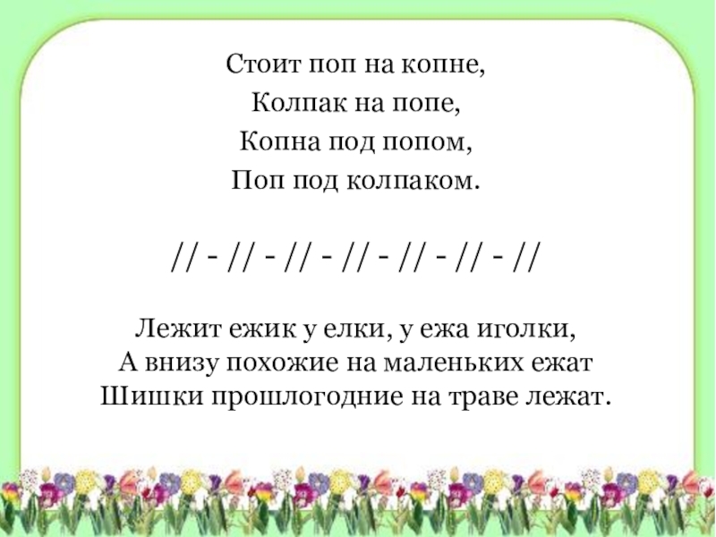 1. Игра «Стишки-товарищи»Есть на новом платье у меня кармашки.На кармашках этих вышиты ромашкиРомашки, ромашки, будто луговыеРомашки, ромашки