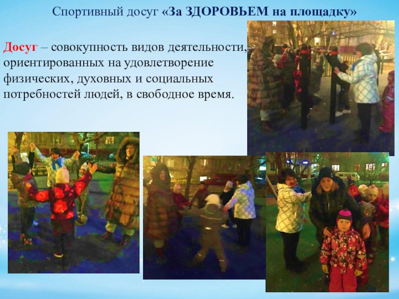 Слайд 8Спортивный досуг «За ЗДОРОВЬЕМ на площадку»