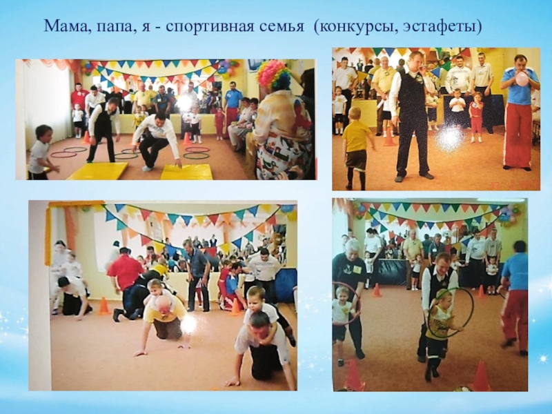 Слайд 16Мама, папа, я - спортивная семья (конкурсы, эстафеты)
