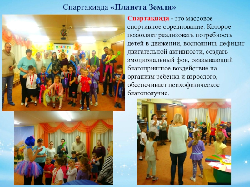 потребность детей в движении, восполнить дефицит двигательной активности, создать эмоциональный фон, оказывающий благоприятное воздействие на организм ребенка и взрослого, обеспечивает психофизическое благополучие.