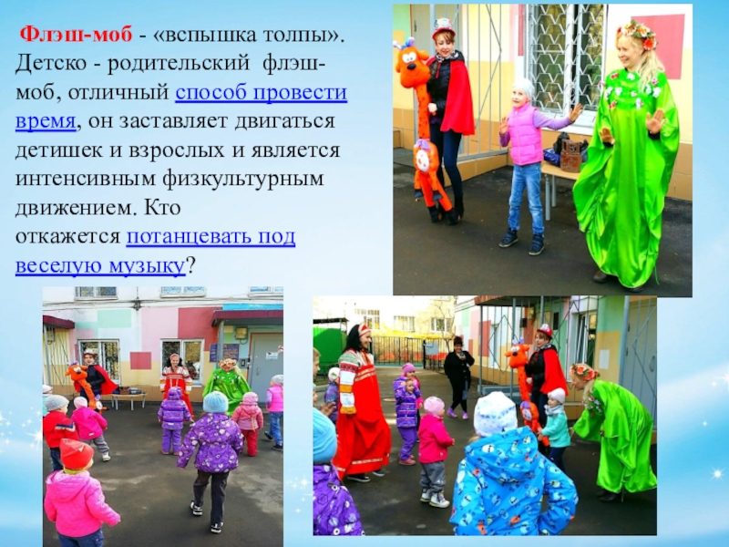 Слайд 13 Флэш-моб - «вспышка толпы». Детско - родительский флэш-моб, отличный способ провести