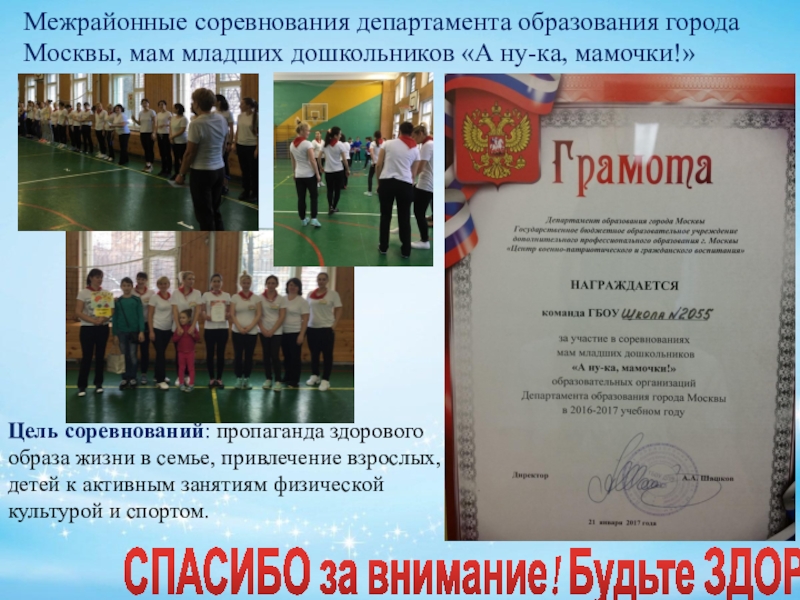 Слайд 17Межрайонные соревнования департамента образования города Москвы, мам младших дошкольников «А ну-ка,