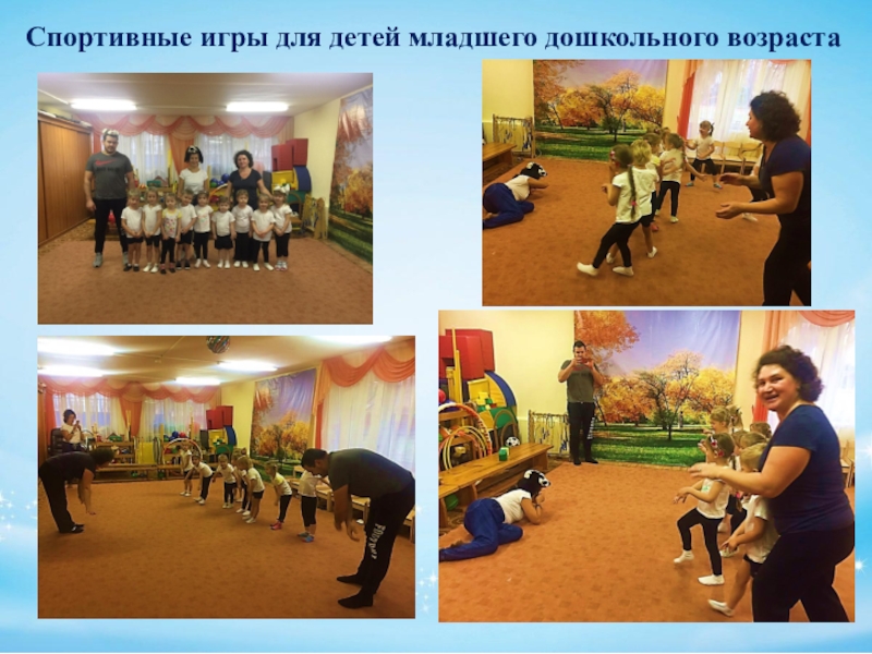 Слайд 15Спортивные игры для детей младшего дошкольного возраста