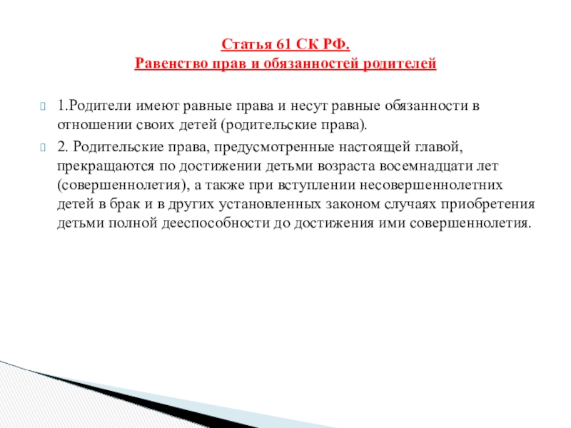 Слайд 291.Родители имеют равные права и несут равные обязанности в отношении своих