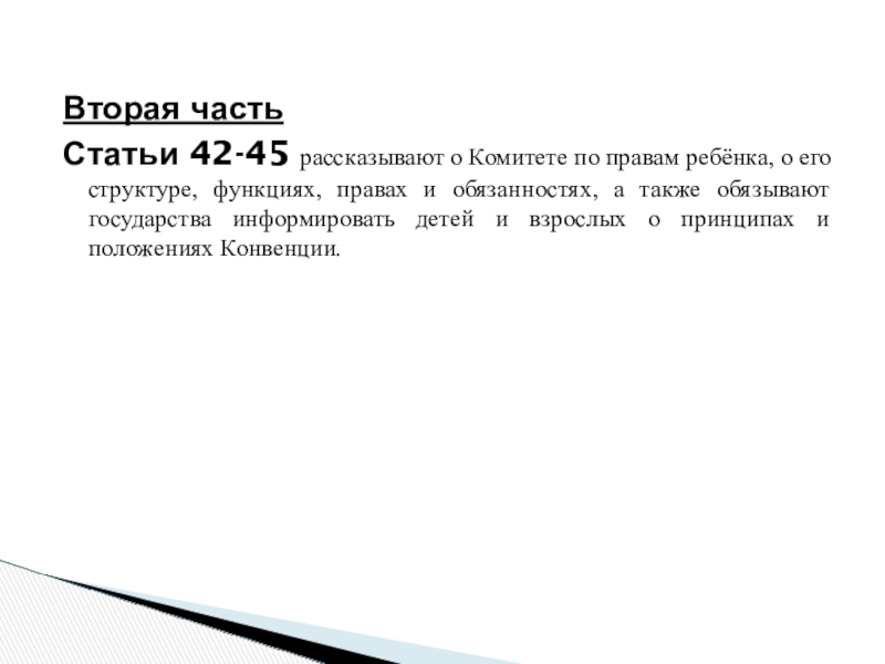 Статьи 42-45 рассказывают о Комитете по правам ребёнка, о его