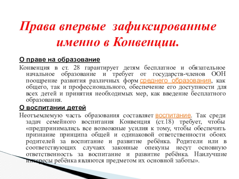 Права впервые зафиксированные именно в Конвенции.
