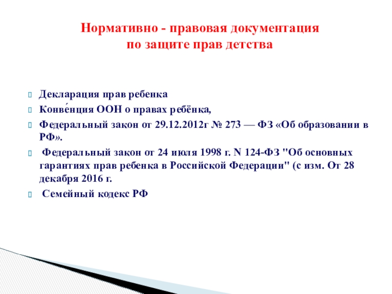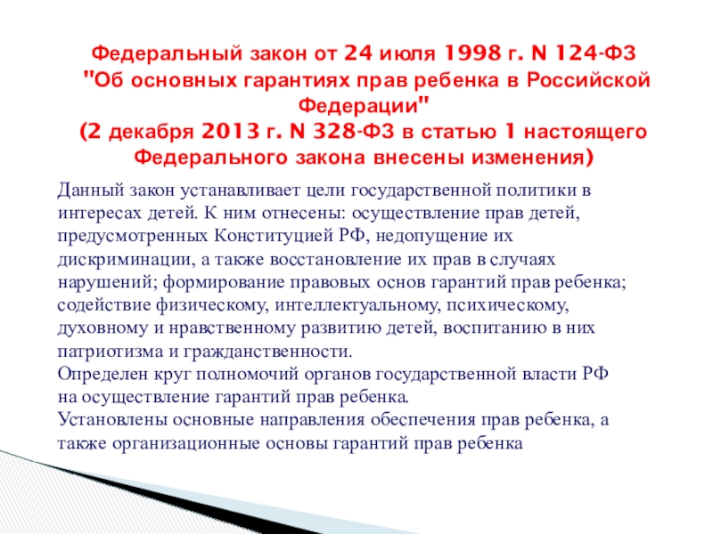 Федеральный закон от 24 июля 1998 г. N 124-ФЗ "Об основных гарантиях прав ребенка в Российской Федерации" (с изм. От 28 декабря 2016 г.
