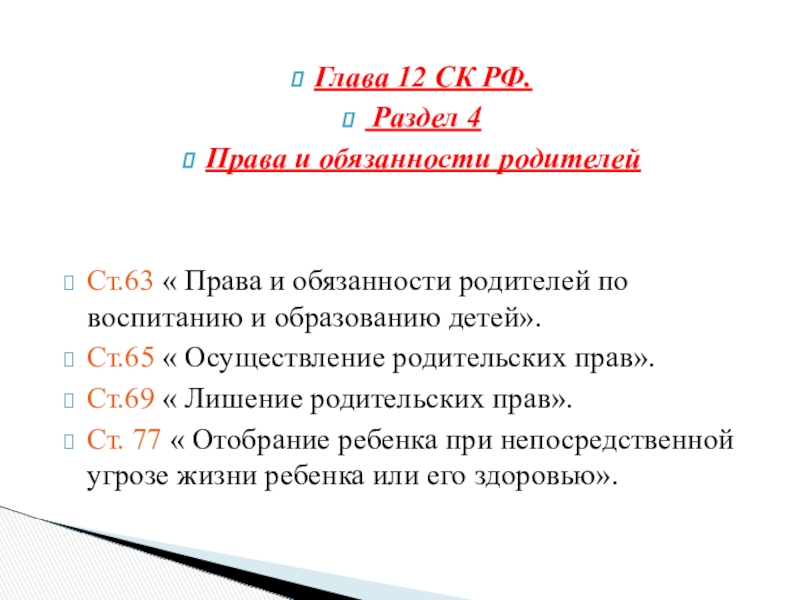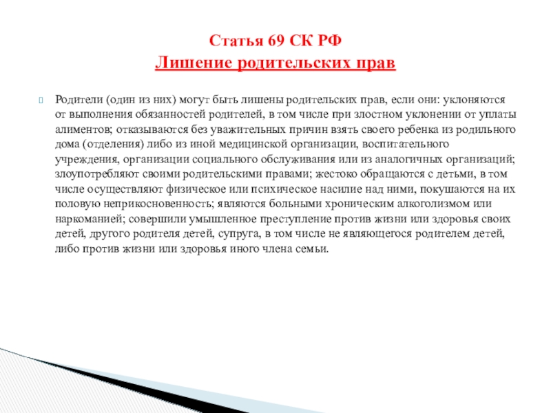 Ст.69 « Лишение родительских прав».
