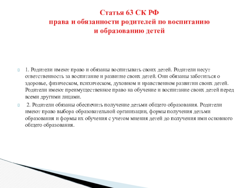 1. Родители имеют право и обязаны воспитывать своих детей. Родители несут