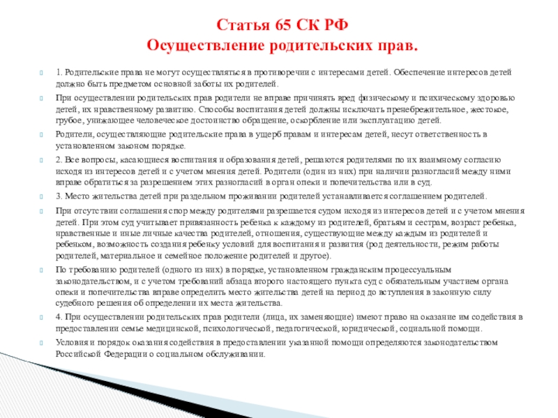 Ст.65 « Осуществление родительских прав».
