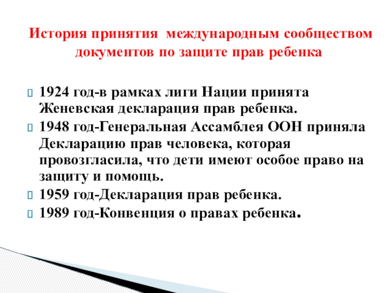 Слайд 41924 год-в рамках лиги Нации принята Женевская декларация прав ребенка.