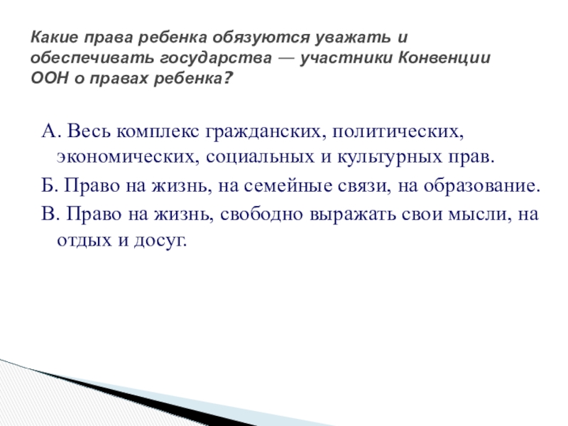 Слайд 35А. Весь комплекс гражданских, политических, экономических, социальных и культурных прав.