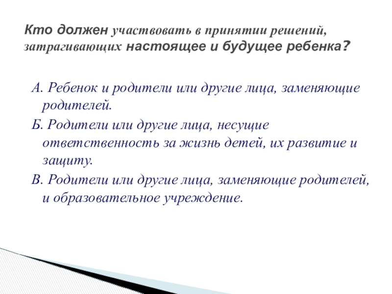 Кто должен участвовать в принятии решений, затрагивающих настоящее и будущее ребенка?