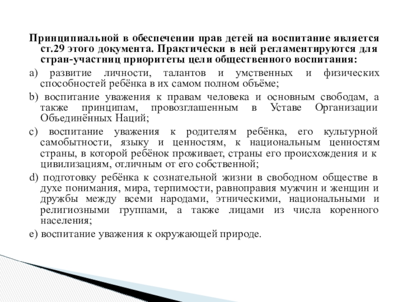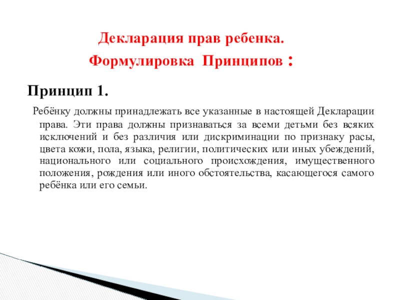 Ребёнку должны принадлежать все указанные в настоящей Декларации права.