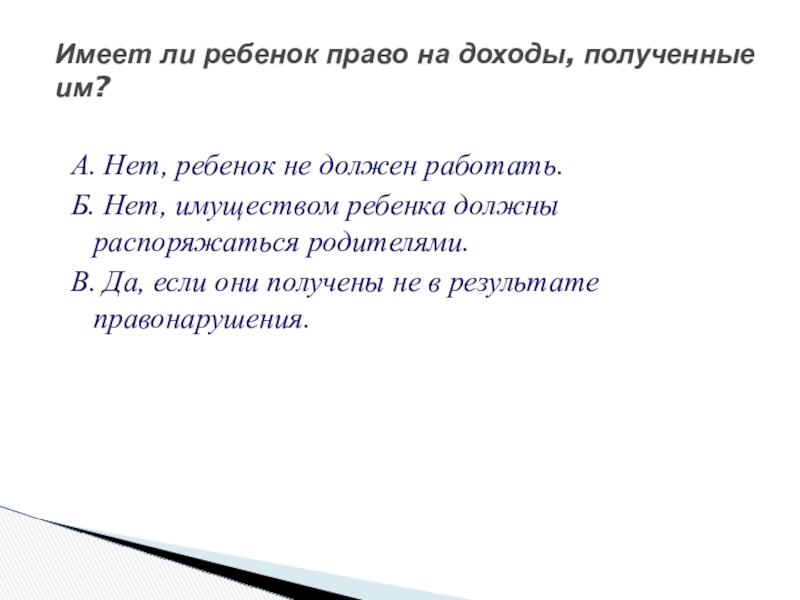Слайд 38А. Нет, ребенок не должен работать.