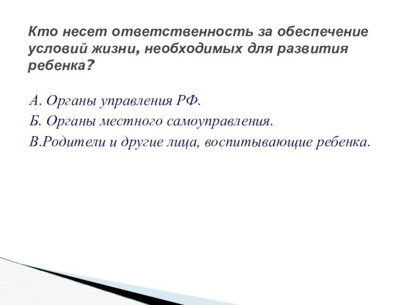 Кто несет ответственность за обеспечение условий жизни, необходимых для развития ребенка?