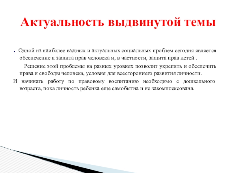 Актуальность выдвинутой темы