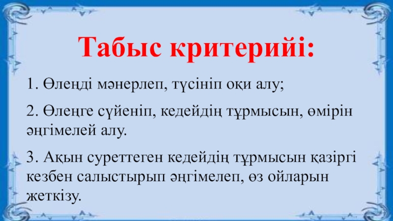 2. Өлеңге сүйеніп, кедейдің тұрмысын, өмірін әңгімелей алу.