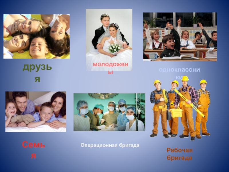 Рабочая бригадаОперационная бригадаСемьядрузьямолодоженыодноклассники