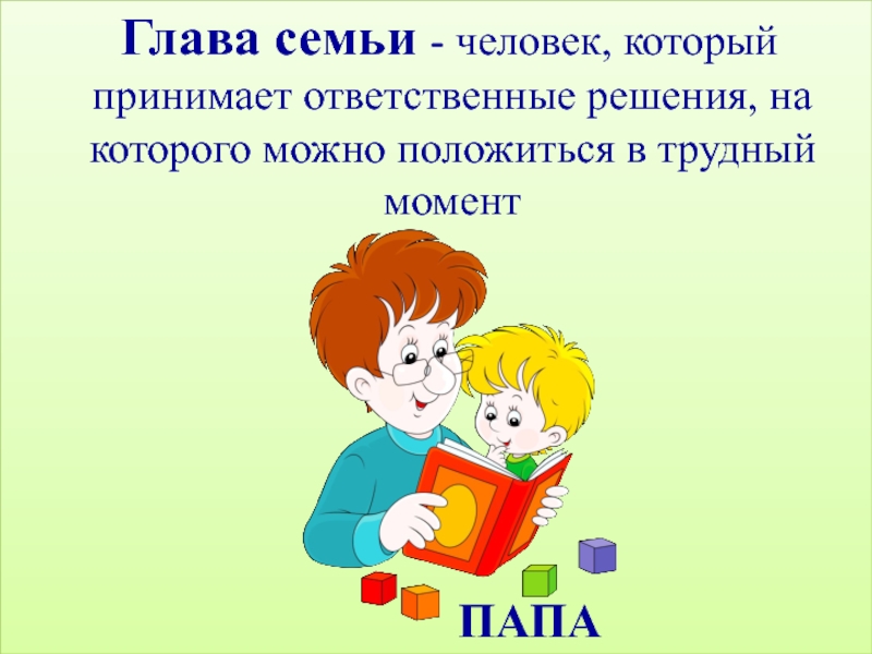 Глава семьи - человек, который принимает ответственные решения, на которого можно положиться в трудный момент ПАПА