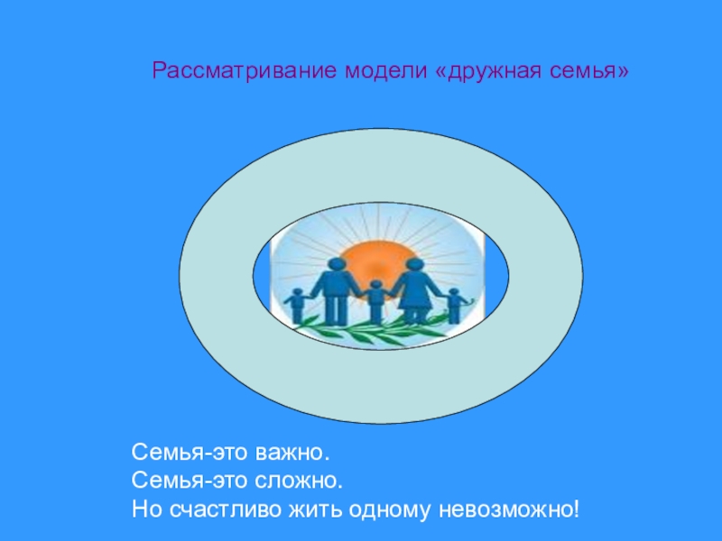 Рассматривание модели «дружная семья»Семья-это важно. Семья-это сложно. Но счастливо жить одному невозможно!