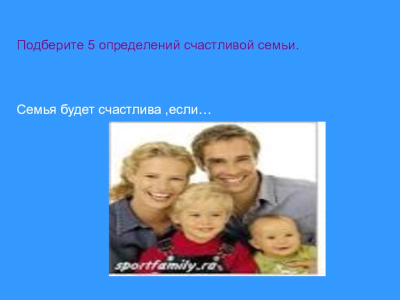 Подберите 5 определений счастливой семьи. Семья будет счастлива ,если…