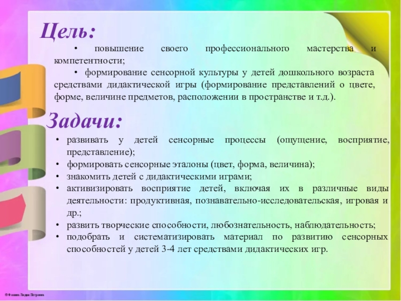 подобрать и систематизировать материал по развитию сенсорных способностей у детей 3-4 лет средствами дидактических игр.