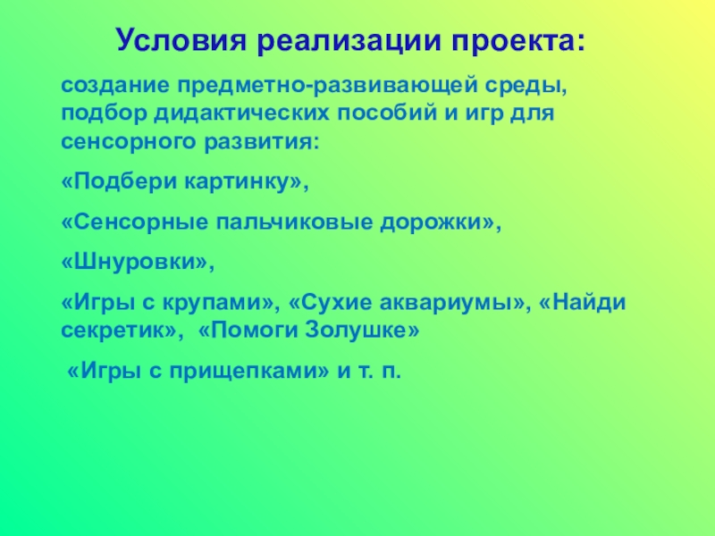 Условия реализации проекта: