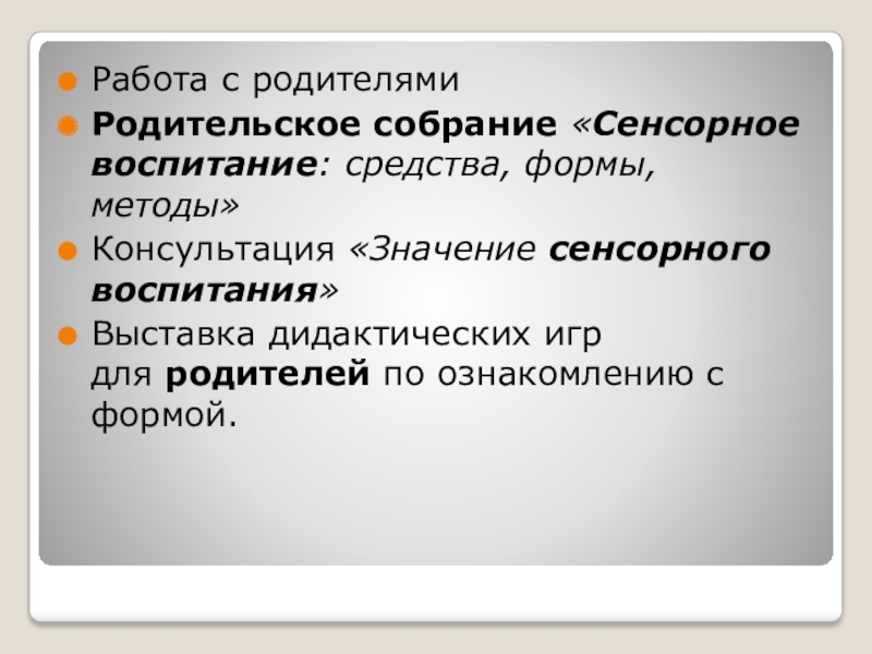 Родительское собрание «Сенсорное воспитание: средства, формы, методы»