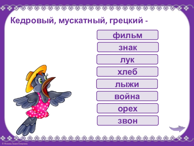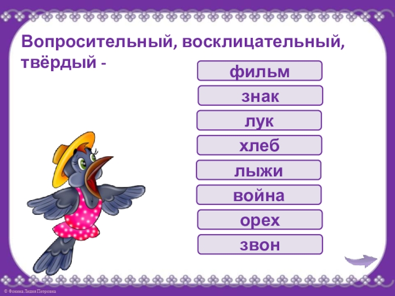 орехВопросительный, восклицательный, твёрдый -хлебфильмзнаклуклыживойназвон