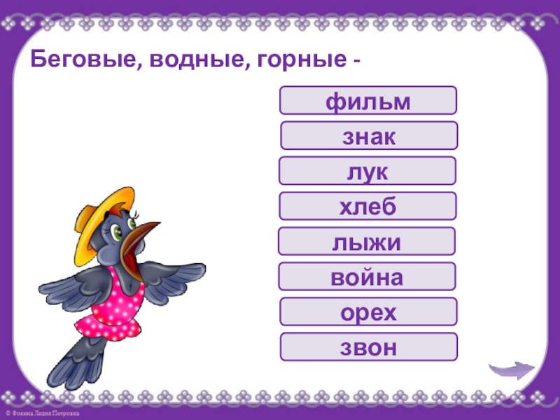 орехБеговые, водные, горные -хлебфильмзнаклуклыживойназвон