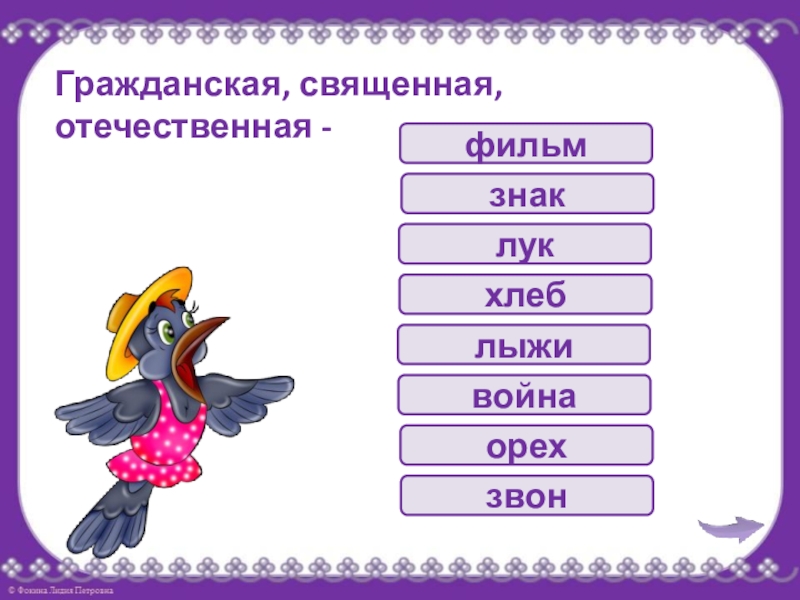 орехГражданская, священная, отечественная -хлебфильмзнаклуклыживойназвон