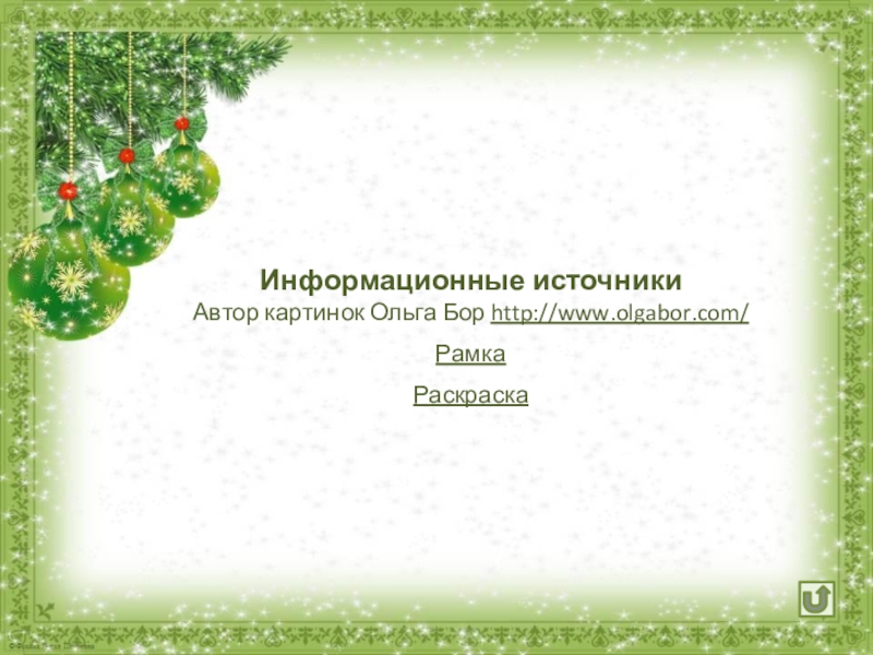 Информационные источникиАвтор картинок Ольга Бор http://www.olgabor.com/Рамка Раскраска