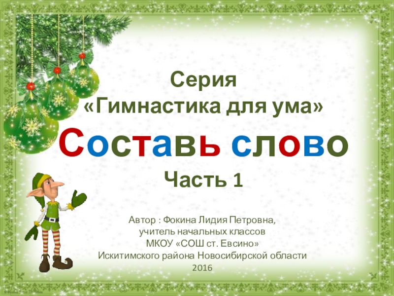 Серия «Гимнастика для ума»Составь словоЧасть 1Автор : Фокина Лидия Петровна, учитель начальных классовМКОУ «СОШ ст. Евсино» Искитимского