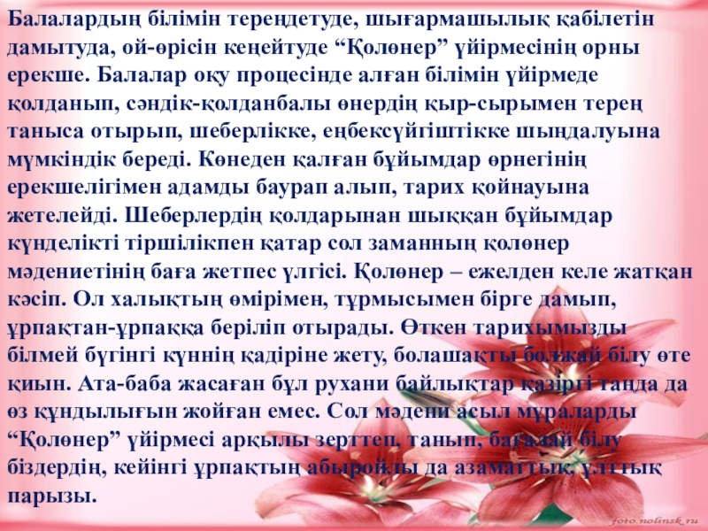 1.Балалардың шығармашылық жұмыстарын дамыту.