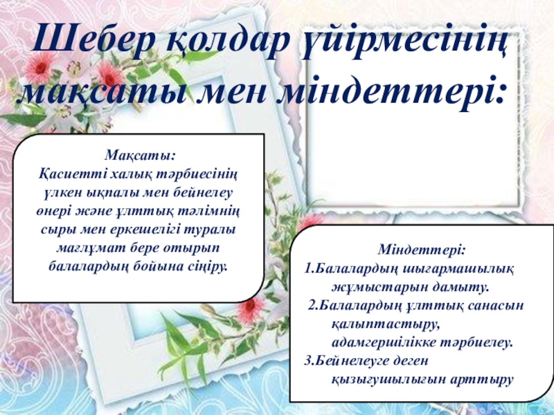 2.Балалардың ұлттық санасын қалыптастыру, адамгершілікке тәрбиелеу.