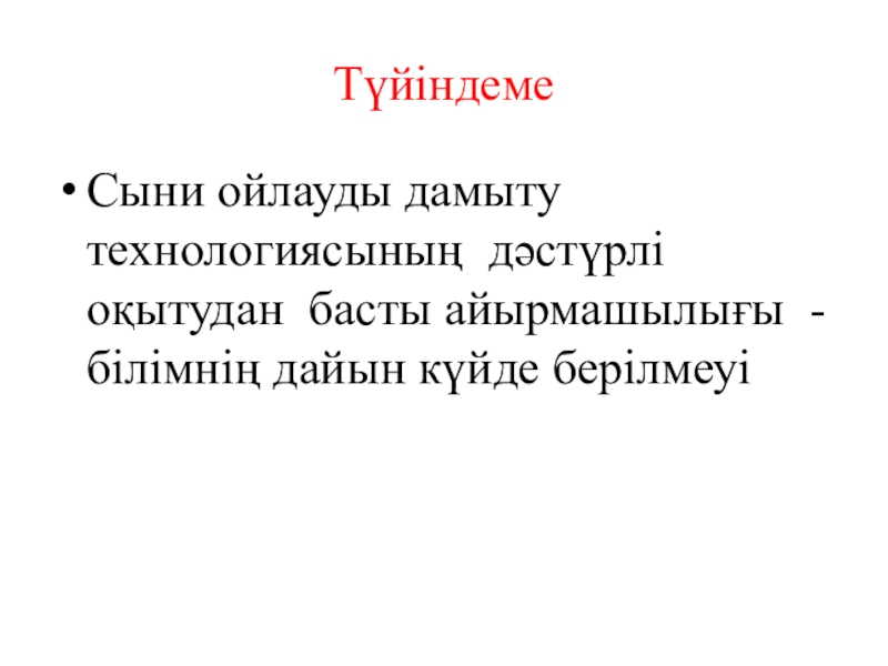 Сыни ойлауды дамыту технологиясының дәстүрлі оқытудан басты айырмашылығы - білімнің