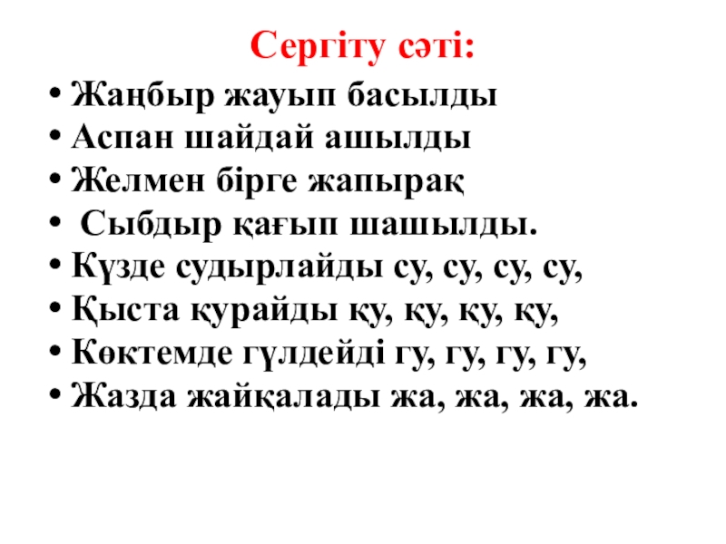 Слайд 10Сергіту сәті: