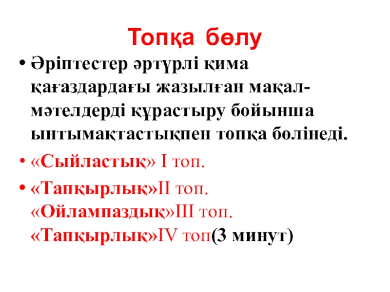 «Тапқырлық»ІV топ(3 минут)