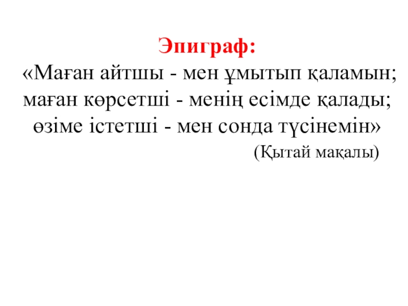 «Маған айтшы - мен ұмытып қаламын; маған көрсетші - менің